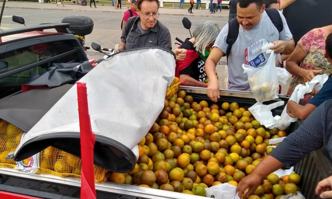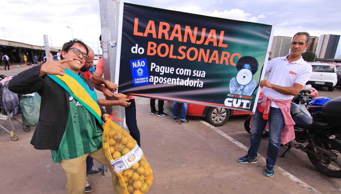 Sobre o ato, o secretário-geral da CUT Brasília, Rodrigo Rodrigues, explicou que as laranjas simbolizam as inúmeras denúncias que envolvem a família Bolsonaro e seus aliados, nesse curto governo que ainda nem completou dois meses. “O ‘Laranjal do Bolsonaro’ custa a sua aposentadoria, trabalhador e trabalhadora”, alertou o dirigente.