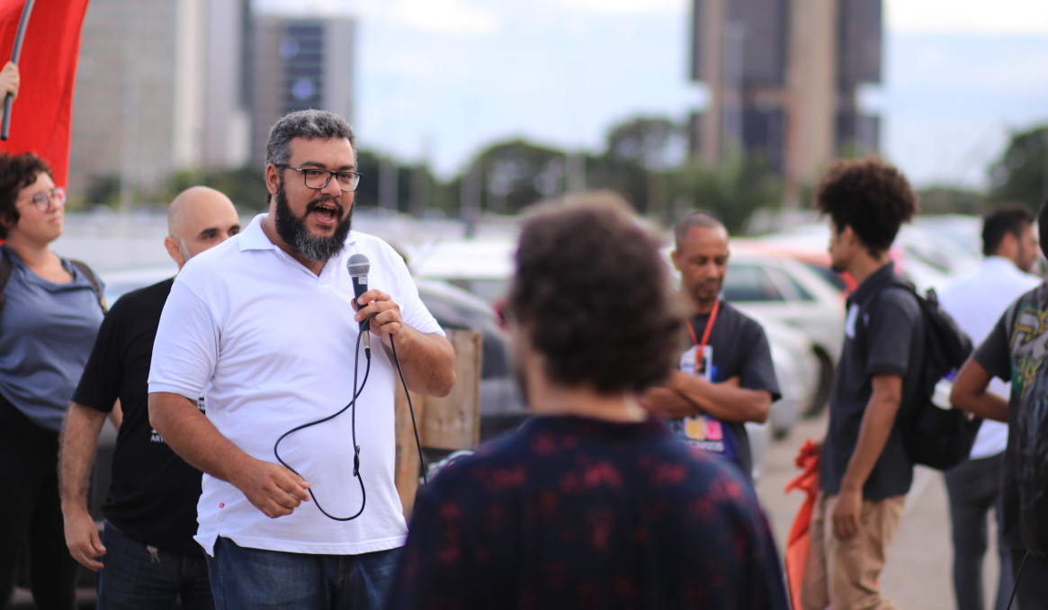 Mas, a criatividade não parou por aí. A atividade também contou com a participação de Bolsonaro Mulambo, um personagem alusivo ao presidente de extrema direita que anunciava o fim das aposentadorias, interpretado pelo dirigente do Sinpro e secretário de Política Social da CUT Brasília, Yuri Soares. “Trabalhador não vai aposentar mais. Não é político e não colocou a família toda na política como eu fiz, e se deu mal. Alguém tem que pagar a conta, né?”, satirizou o sindicalista.