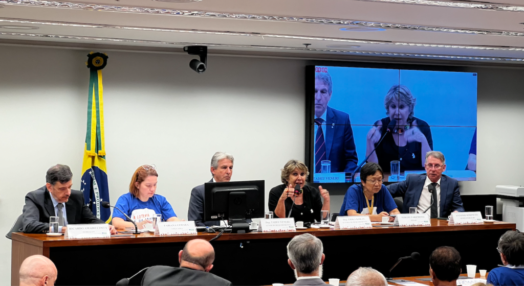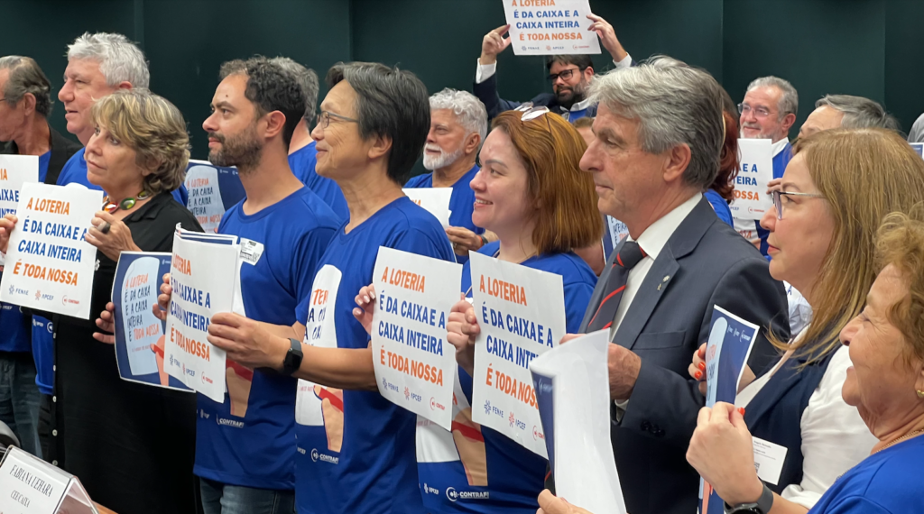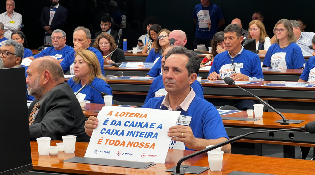 Em audiência pública na Câmara, nesta quarta-feira (3), para discutir a transferência das operações das loterias para uma subsidiária da Caixa, o Sindicato e outras entidades representativas dos empregados do banco foram unânimes em defender a continuidade da Caixa 100% pública. E registram questionamentos e preocupações com essa pauta, “construída da forma obscura e açodada” pela empresa.