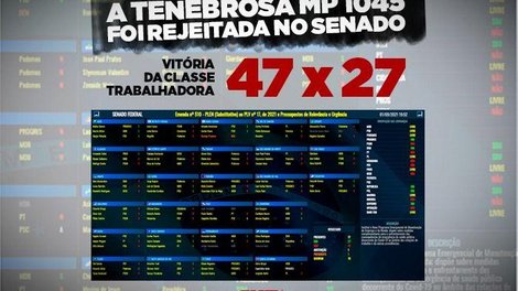 Em postagem no Twitter, Sérgio comemorou: "Acabamos de derrotar Bolsonaro no Senado, que rejeitou por 47 votos a 27 a MP 1045, nefasta medida de reforma trabalhista que acabava com direitos dos trabalhadores. Luta unitária das Centrais Sindicais, com atos e pressão sobre o Parlamento".