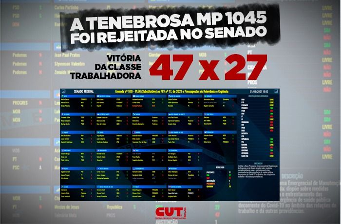 Por 47 a 27, o Senado derrotou o governo de Jair Bolsonaro (ex-PSL) e rejeitou integralmente a reforma Trabalhista que a Câmara dos Deputados contrabandeou no texto da Medida Provisória (MP) nº 1.045, em conluio com o ministro da Economia, Paulo Guedes.