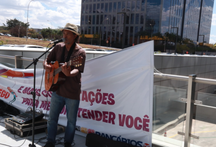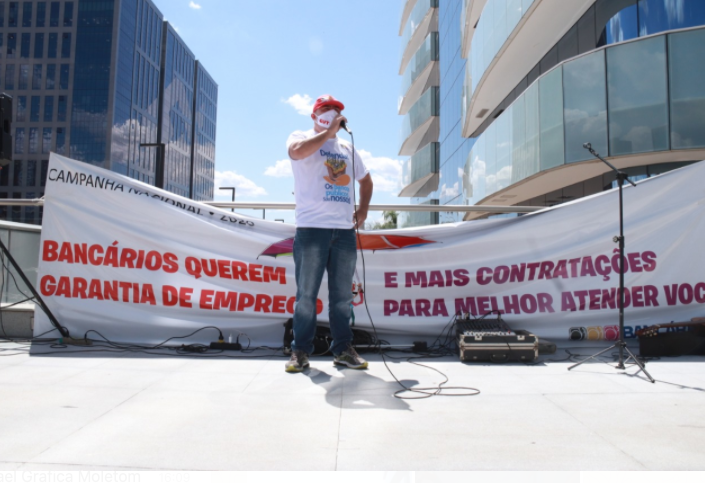 O ato, que respeitou o distanciamento social e seguiu as orientações das organizações de saúde, contou com atualizações e informes sobre o processo de negociação com os bancos dentro da Campanha. Bancárias e bancários foram convocados a somar forças à mobilização nacional pela manutenção dos direitos e conquistas.