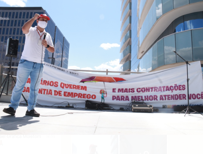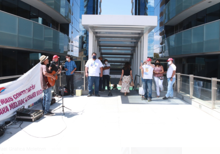Dando sequência às atividades da Campanha Nacional dos Bancários 2020, o Sindicato promoveu um ato em frente à nova sede do BRB na manhã desta quinta-feira (20). Participaram da atividade, que ocorreu horas antes da negociação com a Federação Nacional dos Bancos, diretores do Sindicato e da Federação dos Bancários do Centro Norte (Fetec-CUT/CN).