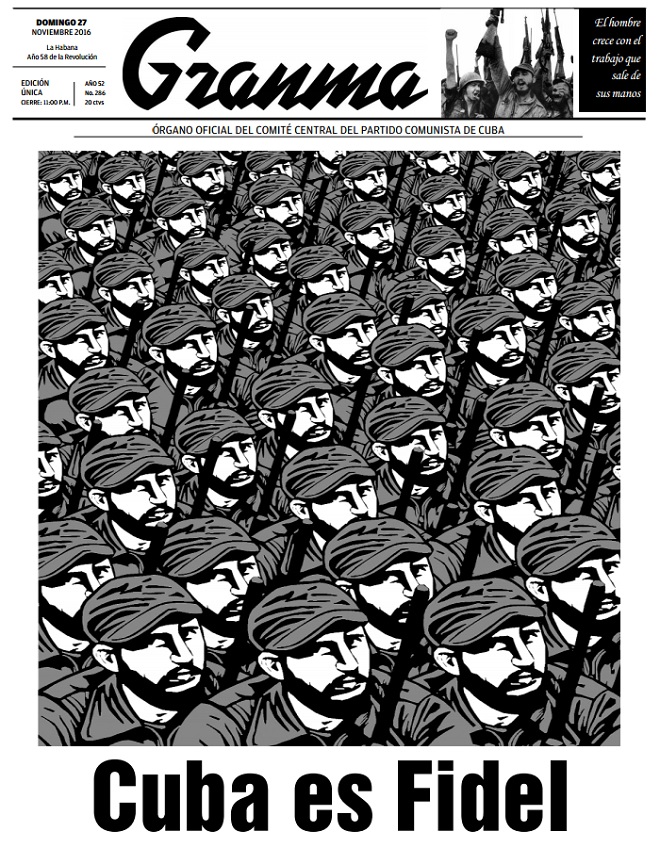 Com a manchete “Cuba é Fidel", o periódico se concentra em retratar a vida do ex-comandante em chefe cubano, ressaltar o papel popular no processo revolucionário iniciado na década de 1950