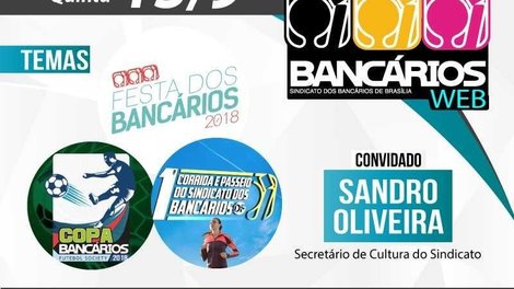 O programa vai ao ar a partir das 17h pelas rede sociais do Sindicato. Para participar, basta enviar suas perguntas ou comentários para tvbancarios@bancariosdf.com.br.