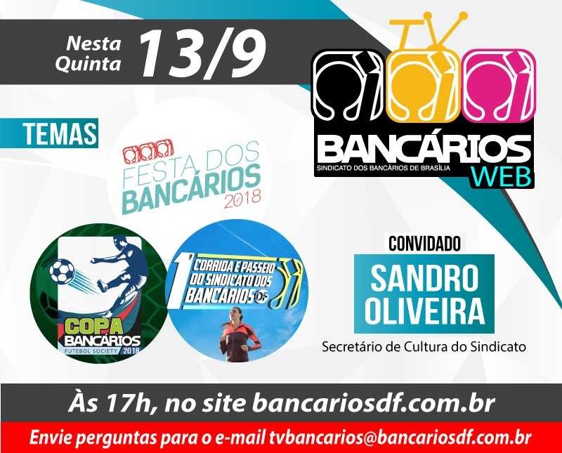 O TV Bancários Web que será exibido ao vivo na tarde desta quinta-feira (13) entrevista o secretário de Cultura Sandro Oliveira, que vai falar sobre as iniciativas da pasta programadas para os próximos meses.
