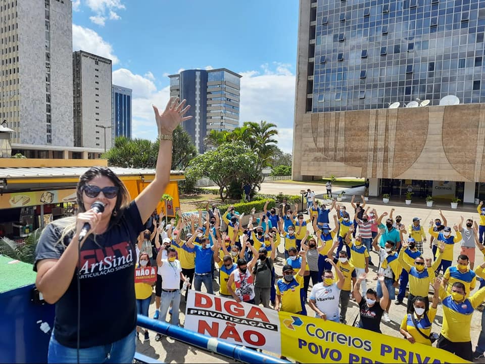 “Privatizar a ECT pode significar a demissão de 100 mil trabalhadores e trabalhadoras, mas mais que isso. A ECT é a única empresa que tem capilaridade em todo território nacional e a única que chega em todos os municípios, como na distribuição de remédios e materiais escolares, por exemplo. Se a estatal for privatizada, a lógica passará a funcionar pelo lucro e cidades pequenas podem ficar desassistidas, assim como acontece com as concorrentes e em outros países”, explicou Amanda, que também é presidenta do Sindicato dos Trabalhadores dos Correios e Telégrafos do Distrito Federal e Região do Entorno (Sintect-DF).