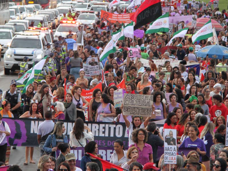 A mobilização começou por volta das 14h, numa concentração em frente ao Museu Nacional da República, onde foram instaladas diversas tendas, com atividades variadas como shows e uma aula pública, com o debate “Pela vidas das mulheres, em defesa da democracia e dos direitos e contra o racismo”.