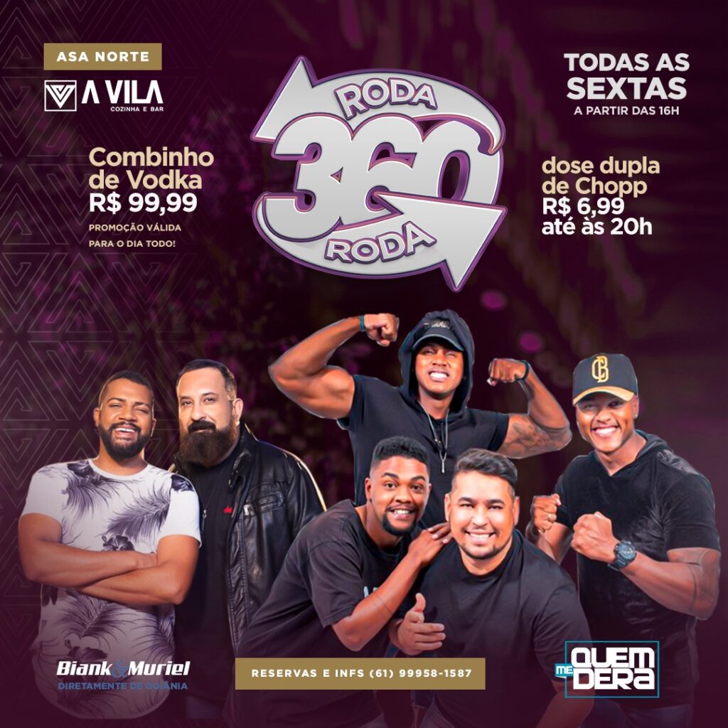 -- Roda 360, às 18h, no Vila Bar Asa Norte (em frente ao Shopping Liberty Mall) – pagode e sertanejo ao vivo.