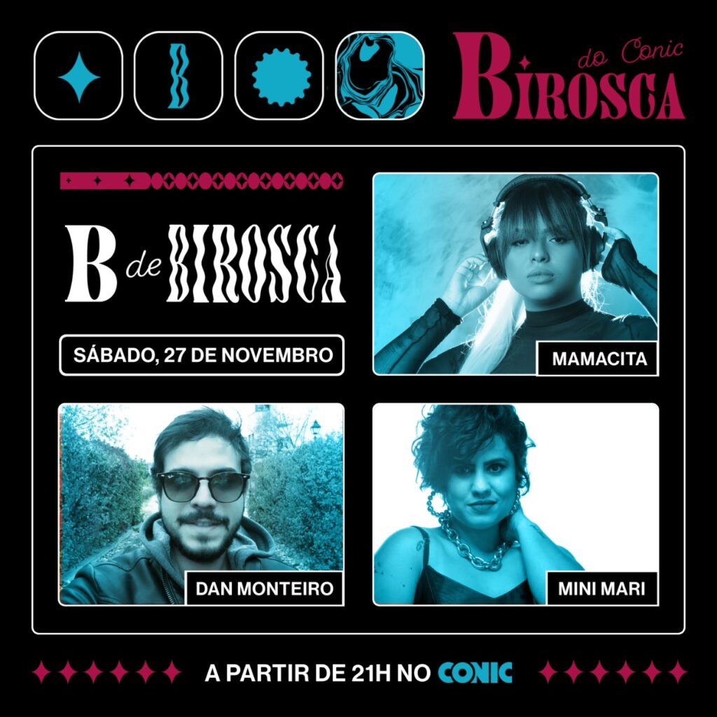-- B de Birosca, às 21h, no Birosca (SDS Bloco E loja 3 – Conic), com DJs Mamacita, Mini Mari, Dan Monteiro.