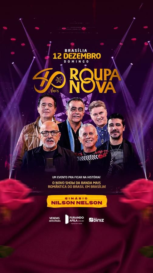 -- Roupa Nova 40 anos, às 18h, no Ginásio Nilson Nelson. O novo show do Roupa Nova, a banda mais romântica do Brasil.