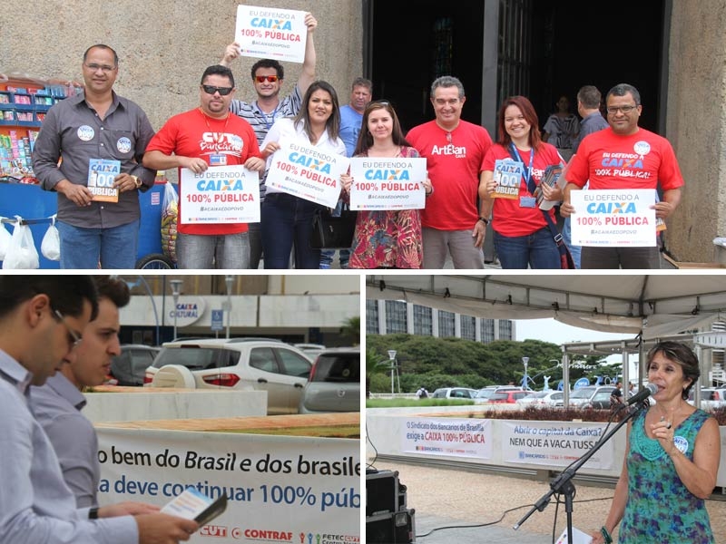 Esta sexta-feira (27) foi marcada por uma série de manifestações em todo o país dentro do Dia Nacional de Luta em Defesa da Caixa 100% Pública. Em Brasília, o protesto ocorreu a partir do meio-dia, em frente ao Edifício Matriz I, no Setor Bancário Sul.