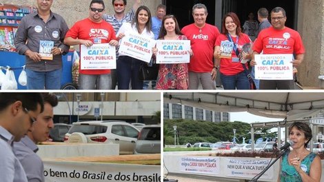 Esta sexta-feira (27) foi marcada por uma série de manifestações em todo o país dentro do Dia Nacional de Luta em Defesa da Caixa 100% Pública. Em Brasília, o protesto ocorreu a partir do meio-dia, em frente ao Edifício Matriz I, no Setor Bancário Sul.