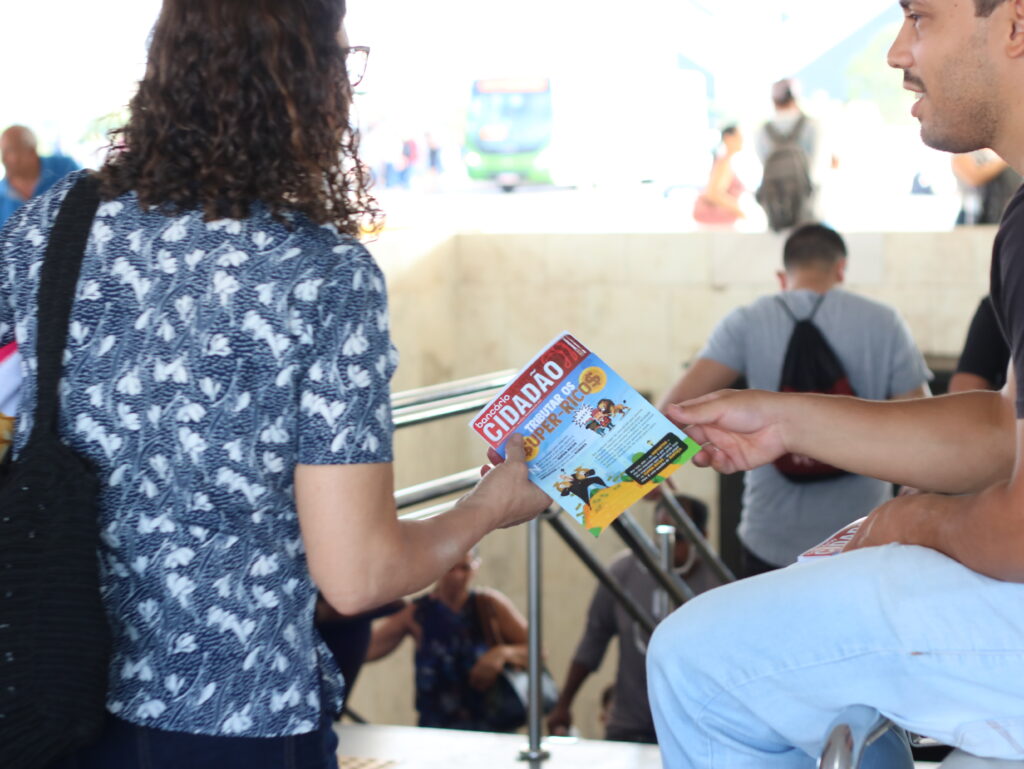 Todo mundo sabe que os super-ricos pagam, proporcionalmente, muito menos impostos do que os mais pobres. Mas, por questão de justiça social e fiscal, é preciso reverter urgentemente essa situação. A fim de esclarecer a população sobre a importância dessa mudança, o Sindicato elaborou um panfleto intitulado Bancário Cidadão – Tributar os Super-Ricos, que foi distribuído na rodoviária do Plano Piloto, na sexta-feira (17).