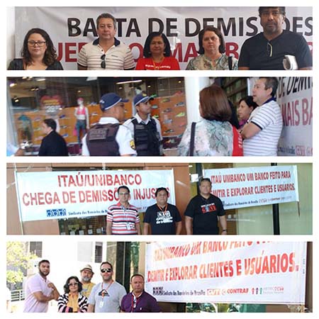 Em mais um dia de manifestações contra as demissões imotivadas feitas pelo Itaú no DF, nas últimas semanas, o Sindicato, com o apoio da Federação dos Trabalhadores em Empresas de Crédito do Centro Norte (Fetec-CUT/CN), retardou nesta sexta-feira (17), em duas horas, a abertura das agências Personnalité do banco no ParkShopping, Águas Claras, Brasília Shopping e Iguatemi Shopping.