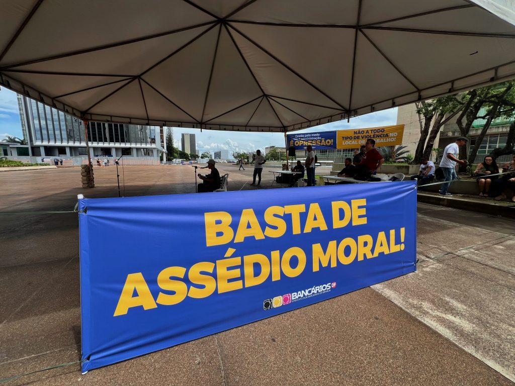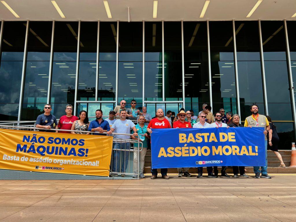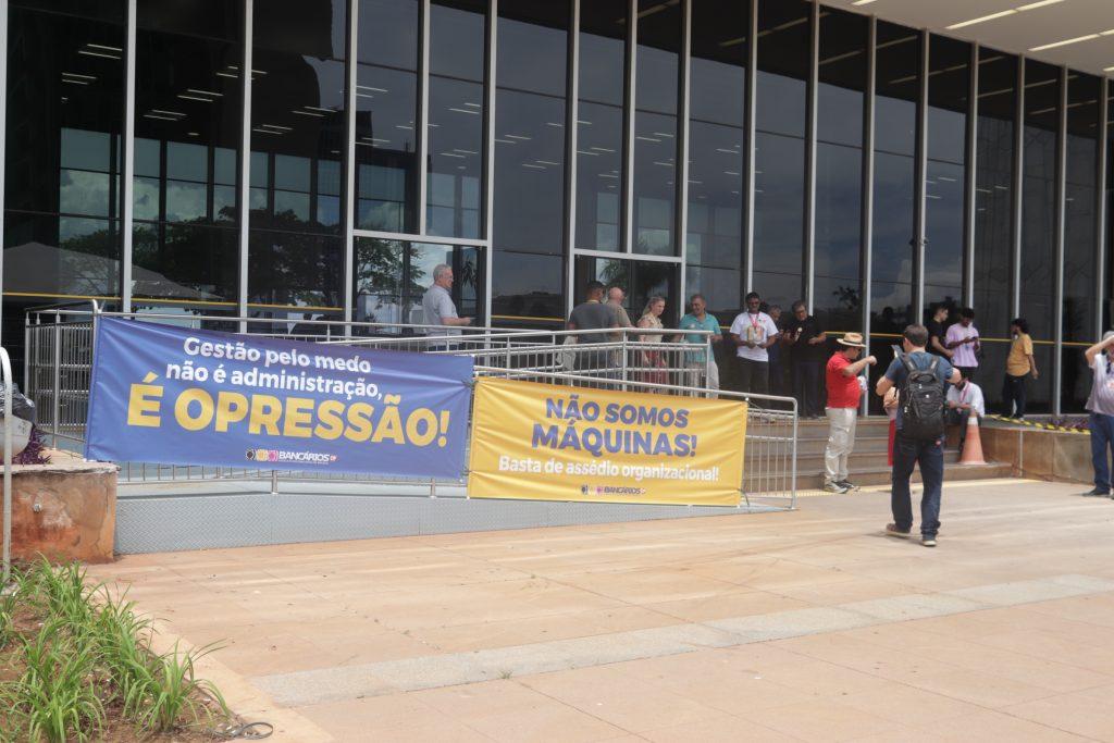 Com o objetivo de defender o caráter público do BB e de pôr fim ao assédio organizacional que vem assolando o funcionalismo, o Sindicato realizou na tarde desta terça-feira (10) um protesto em frente ao edifício Sede III, no Setor Bancário Sul.