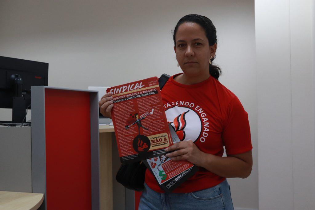 “Estamos na semana de luta contra o Santander para denunciar os abusos de fechamento de agência, demissão em massa e contratação de forma fraudulenta”, afirmou Eliza Espíndola, diretora da Fetec-CUT/CN e funcionária do banco.