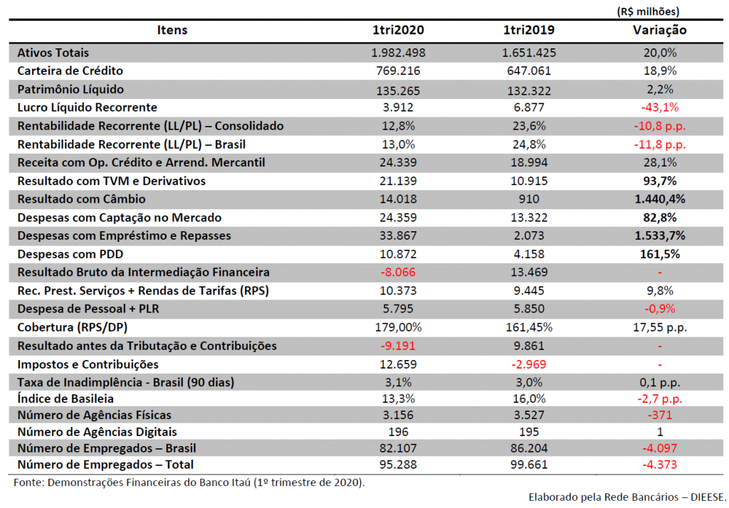 De acordo com o banco, o resultado reflete, dentre outros fatores, o impacto do custo de crédito no primeiro trimestre de 2020, que apresentou um aumento de 175,2% quando comparado ao mesmo trimestre do ano passado, e do produto bancário, que caiu 3,5%.