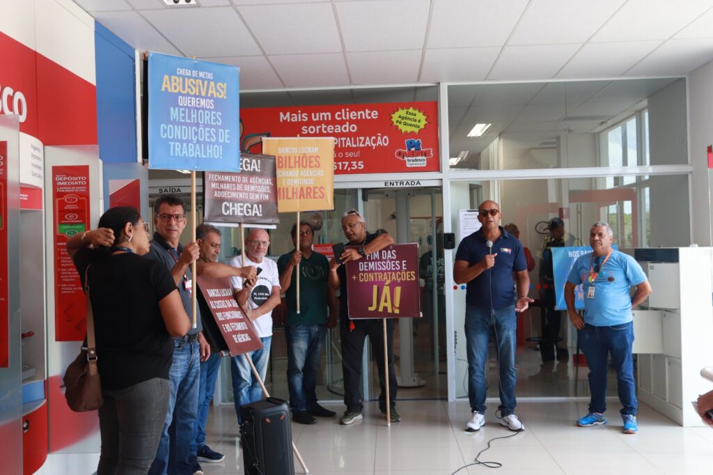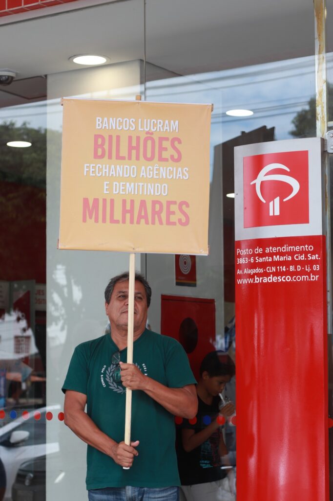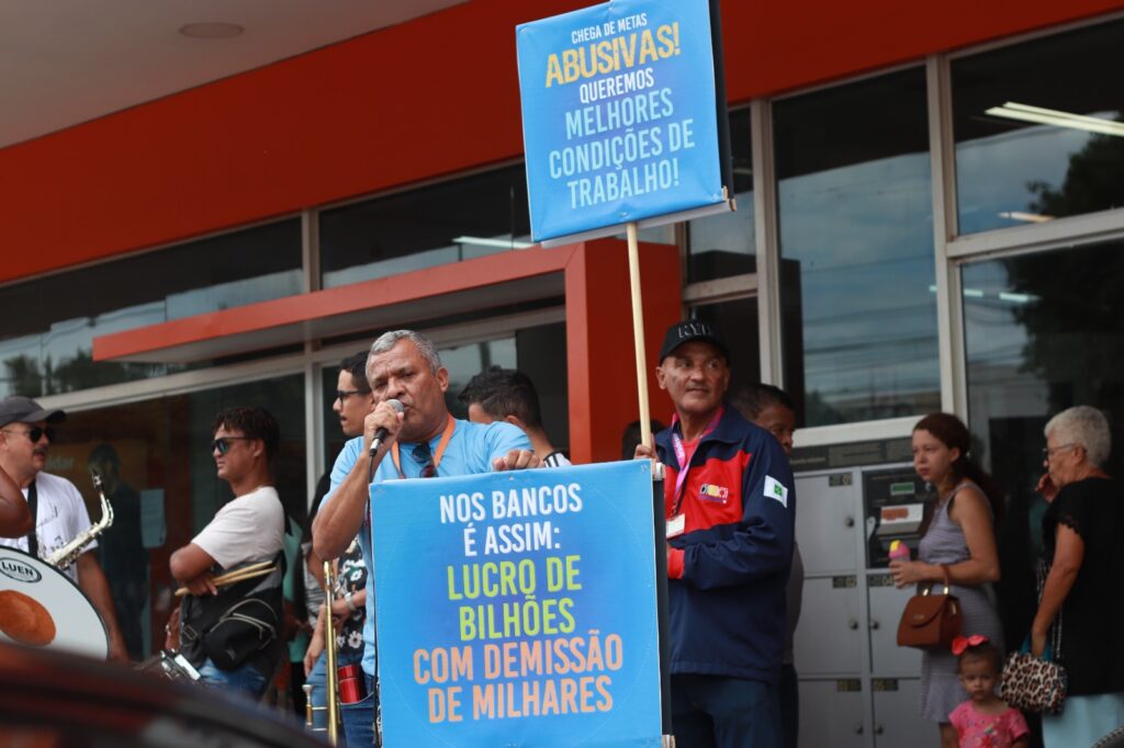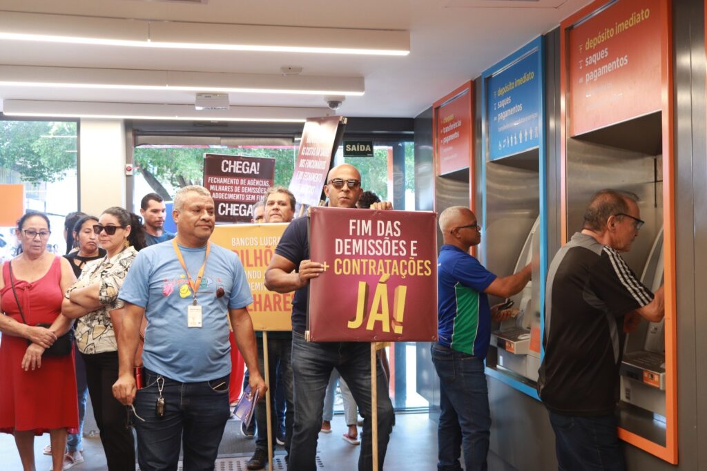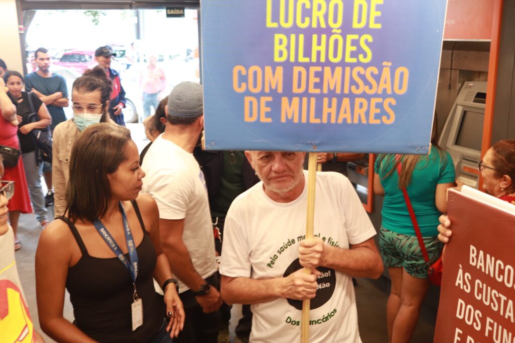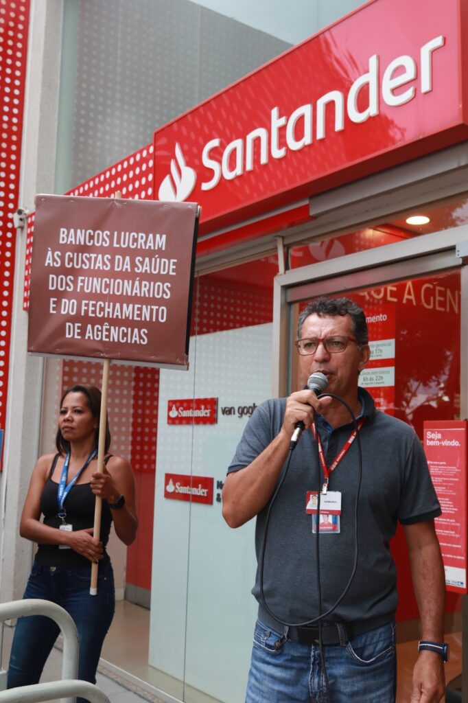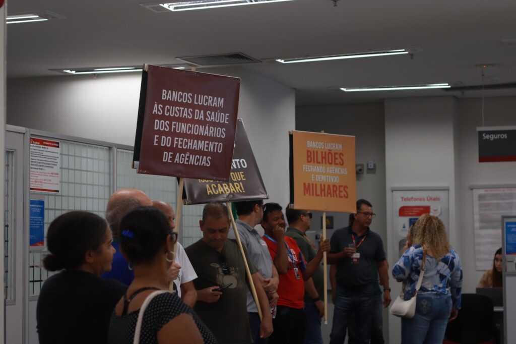 Na ocasião, os representantes dos bancários distribuíram um panfleto esclarecendo que, enquanto os banqueiros só se preocupam com os lucros exorbitantes, aos funcionários restam o descaso e o desprezo, com demissões injustificadas e sem reposição de trabalhadores, fechamento de agências, assédio moral com cobrança de metas abusivas, e adoecimento em função da sobrecarga de trabalho.