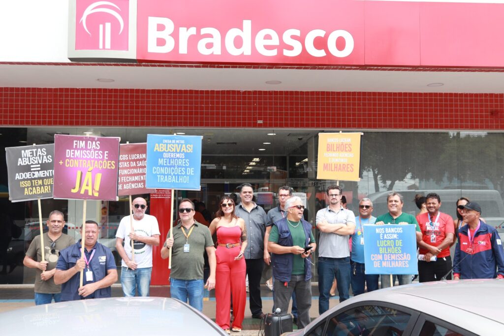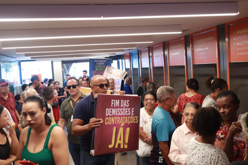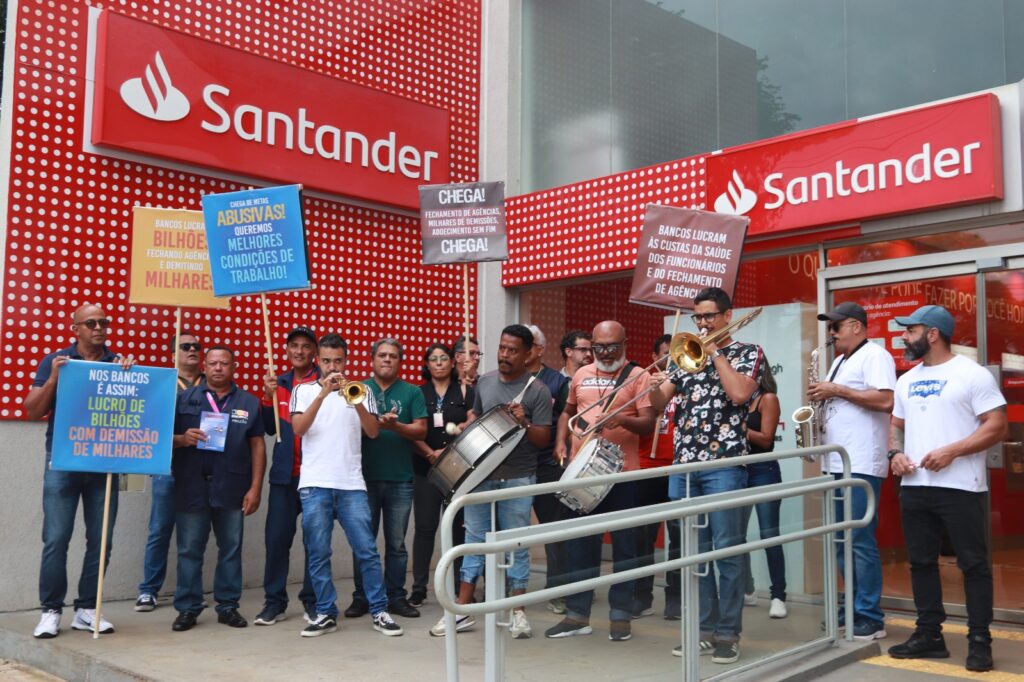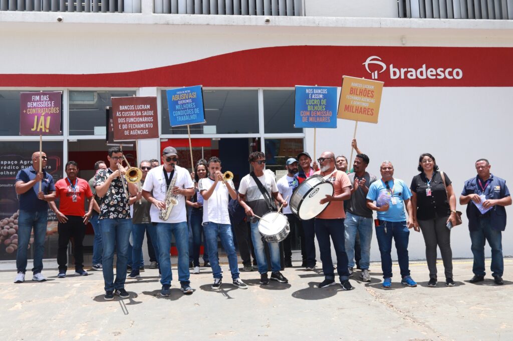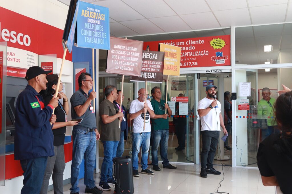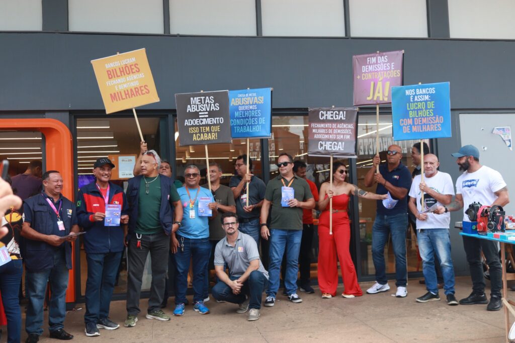 Na ocasião, os representantes dos bancários distribuíram um panfleto esclarecendo que, enquanto os banqueiros só se preocupam com os lucros exorbitantes, aos funcionários restam o descaso e o desprezo, com demissões injustificadas e sem reposição de trabalhadores, fechamento de agências, assédio moral com cobrança de metas abusivas, e adoecimento em função da sobrecarga de trabalho.