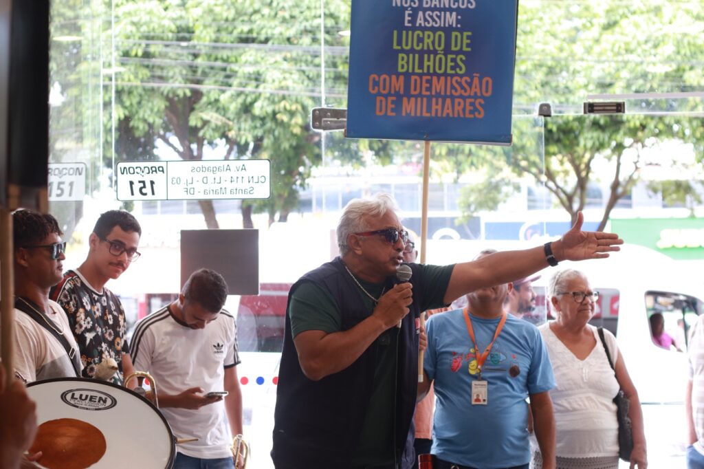 Ao som de marchinhas carnavalescas, com a banda Frevo do Mestre Balbino, dirigentes do Sindicato e da Fetec-CUT/CN visitaram agências do Bradesco, Santander e Itaú de Santa Maria, Gama e Recanto das Emas, nesta terça-feira (06), para convidar os trabalhadores para a luta e informar a população sobre os grandes lucros obtidos pelas instituições financeiras às custas dos bancários, dos clientes e usuários.