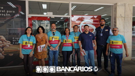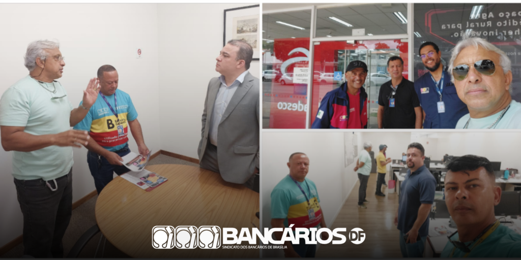 Dando sequências às visitas aos bancos privados, o Sindicato percorreu as agências do Bradesco, Itaú e Santander, da W3 Sul e SCS, nesta quarta-feira (27), para denunciar a precarização das condições de trabalho, o fechamento de unidades e o descaso com os bancários. Os dirigentes sindicais também destacaram a importância da mobilização da categoria para a Campanha Nacional 2024.