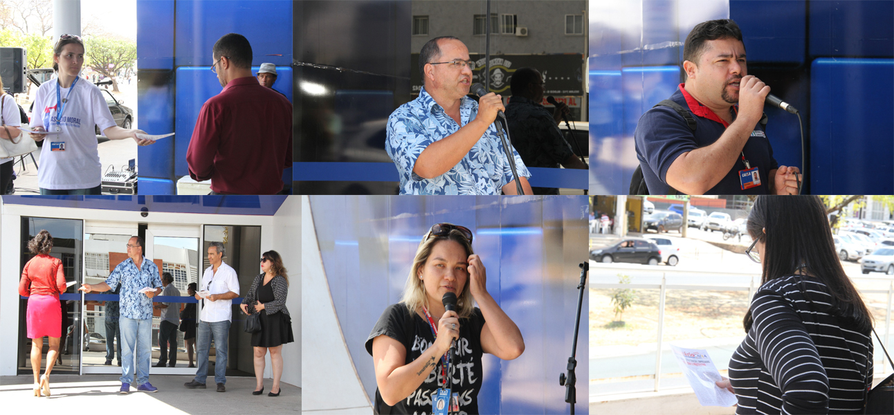 Contra o processo de reestruturação em curso na Caixa, que agora atinge empregados e empregadas da Centralizadora Nacional de Convênios (Cecov), o Sindicato se juntou aos trabalhadores lotados na unidade da 512 Norte, nesta quarta-feira (23), para cobrar respeito aos direitos conquistados e protestar contra a precarização do trabalho.