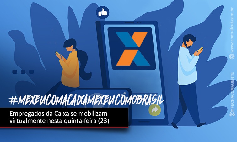 Os empregados da Caixa Econômica Federal realizam na próxima quinta-feira (23) um Dia Nacional de Luta em Defesa da Caixa. Na data, os trabalhadores farão um tuitaço, às 11h, com a hashtag #MexeucomACaixaMexeuComOBrasil. Além do Twitter, a hashtag deve ser utilizada no Facebook, Instagram e demais redes sociais.