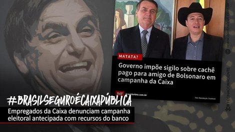 A Comissão Executiva dos Empregados (CEE) da Caixa denuncia o uso indiscriminado do banco e de seus recursos para as campanhas eleitorais antecipada do presidente da República, Jair Bolsonaro, e do presidente do banco, Pedro Guimarães, o que é ilícito.