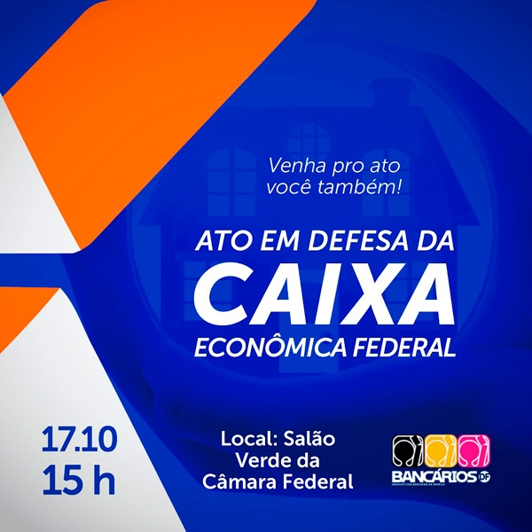 Envolver a sociedade na defesa da Caixa é fundamental. Por isso foi lançada a campanha ‘Defenda a Caixa você também’, no dia 3 de outubro, no Rio de Janeiro (RJ). A iniciativa, realizada em parceria com as centrais sindicais CUT, CTB, Intersindical e Conlutas, além de Apcefs, Contraf, federações e sindicatos de bancários, visa mostrar a importância do banco para o Brasil e os brasileiros, destacando a atuação em áreas como habitação, saneamento básico, infraestrutura, educação, esporte, cultura, entre outras.