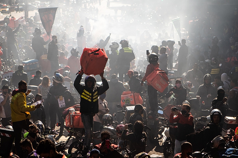 Ele ainda conta que os entregadores, que majoritariamente têm como única renda o que vem do trabalho desenvolvido para as empresa de entrega por aplicativo, são submetidos a bloqueios arbitrários das plataformas. “Simplesmente a gente acorda de manhã cedo, tenta logar no aplicativo e aí a gente vê que está bloqueado. A única coisa que recebemos é um email falando: ‘encerramos a parceria, baseado no artigo 14 dos termos de uso’. E só. Não fala por que você foi banido. Foi mau uso da plataforma? Não entregou nenhum pedido? Não tem explicação.”