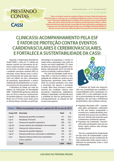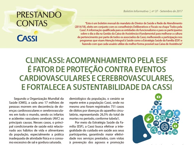 O Boletim Prestando Contas Cassi deste mês segue a série de informativos feitos para esclarecer o quanto o modelo assistencial de Atenção Integral à Saúde, baseado na Atenção Primária (APS) e Estratégia Saúde da Família (ESF), e organizado a partir das CliniCassi, é exitoso e protege tanto os participantes já vinculados ao modelo quanto favorece a sustentabilidade da Caixa de Assistência dos Funcionários do Banco do Brasil, a maior autogestão em saúde do País.