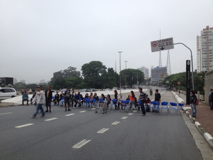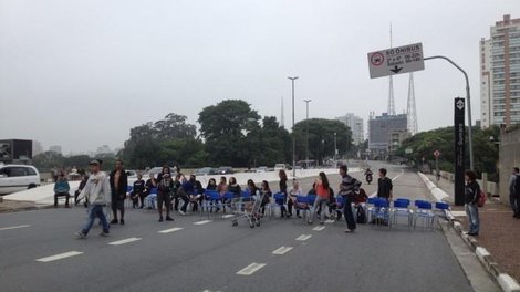 Durante a manifestação, os alunos bloquearam por quase três horas as duas pistas da avenida 9 de Julho. Por volta das 21h, quando a polícia tentou liberar o trânsito na avenida, houve confusão. Os policiais jogaram spray de pimenta e bombas de efeito moral contra os manifestantes. Para impedir o avanço da tropa, os alunos fizeram barricadas com sacos de lixos e caixas de papelão.
