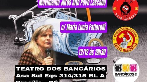O debate é fruto de uma parceria entre o Sindicato, o Movimento Juros Altos, Povo Lascado e o Movimento Revolucionário Carlos Marighella. A entrada é gratuita.