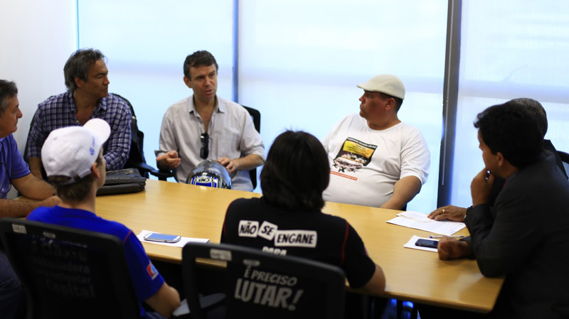 Após a audiência com o deputado Ricardo Vale, os sindicalistas foram ao gabinete do deputado distrital Chico Vigilante (PT-DF) buscar informações sobre um requerimento da bancada do PT na Câmara para a realização de uma audiência pública na quarta-feira (17). O objetivo da reunião foi debater a proposição.