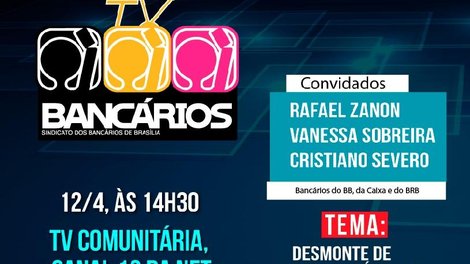 Para falar sobre esses ataques, o TV Bancários na TV Comunitária desta sexta (12) entrevista os diretores do Sindicato Rafael Zanon, Vanessa Sobreira e Cristiano Severo, funcionários do BB, da Caixa e do BRB, respectivamente.