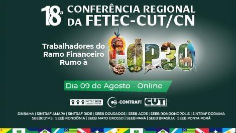 A Federação dos Trabalhadores em Empresas de Crédito do Centro-Norte realizará neste sábado 9 de agosto, de forma virtual, a 18ª Conferência Regional da Fetec-CUT/CN para discutir e aprovar as propostas que levará à 27ª Conferência Nacional dos Bancários, aos encontros nacionais de bancos privados e congressos dos bancos públicos, que acontecerão em São Paulo entre os dias 21 e 24 de agosto.