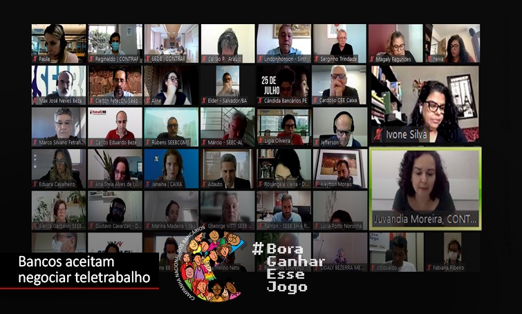 Em reunião realizada nesta terça-feira (26) com o Comando Nacional dos Bancários a Federação Nacional dos Bancos (Fenaban) sinalizou que aceita negociar as propostas dos bancários para definir a redação das cláusulas específicas sobre teletrabalho a serem inseridas na Convenção Coletiva de Trabalho (CCT) da categoria.
