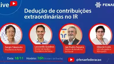 Durante a live, que será transmitida pelo canal da Fenae no YouTube, o presidente da Fenae, Sergio Takemoto; o diretor de Saúde e Previdência da Fenae, Leonardo Quadros; o diretor de Benefícios da Funcef, Jair Ferreira; e a advogada da LBS Advogadas e Advogados, assessoria jurídica da Fenae, Gláucia Costa, vão explicar os detalhes e os impactos da decisão do STJ. Além deles, outros convidados vão abordar o alcance da decisão e suas implicações para os participantes da Funcef.