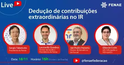 A Federação Nacional das Associações do Pessoal da Caixa (Fenae) vai promover, na tarde desta terça (18), a partir das 16h, uma live para esclarecer dúvidas sobre a decisão do Superior Tribunal de Justiça (STJ) que reconheceu o direito à dedução das contribuições extraordinárias, pagas para o equacionamento de déficits em fundos de pensão, na base de cálculo do Imposto de Renda, até o limite de 12%.