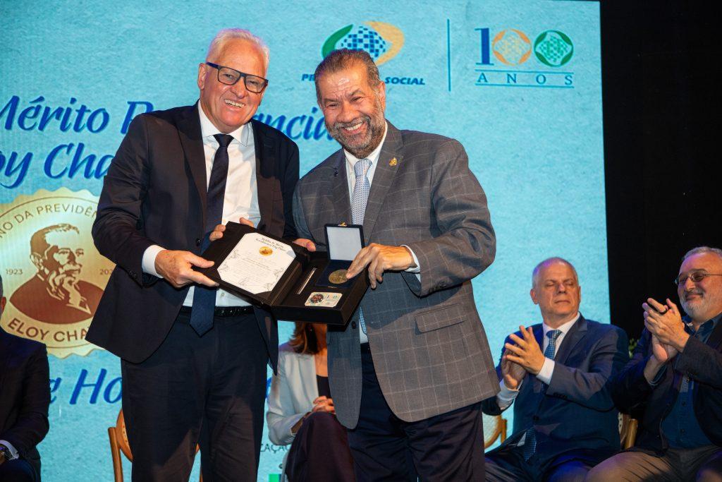 A Fenae (Federação Nacional das Associações do Pessoal da Caixa Econômica Federal) foi agraciada com a Medalha de Mérito Previdenciário Eloy Chaves, uma das maiores honrarias concedidas no âmbito da previdência social brasileira. A cerimônia ocorreu na noite desta quinta-feira (12), em Brasília (DF), e reuniu autoridades, representantes do setor previdenciário e pessoas que contribuíram para o fortalecimento da Previdência.