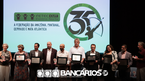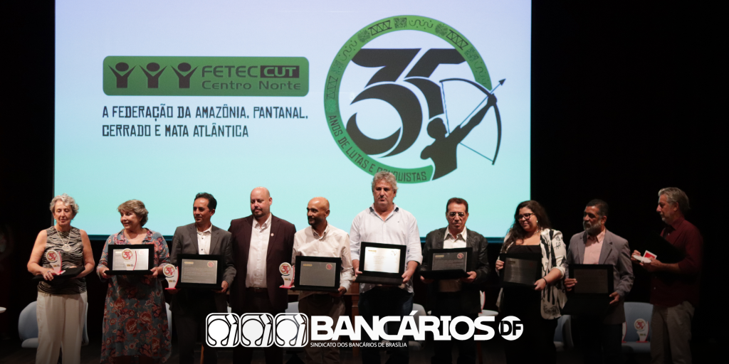 No dia 20 de janeiro de 2025, o Sindicato dos Bancários de Brasília sediou no seu Teatro a solenidade em comemoração aos 35 anos da Fetec-CUT/CN, quando foram homenageados os 13 sindicatos filiados, com a entrega do Selo Comemorativo alusivo à data, que traz na sua arte, os quatro biomas (Amazônia, Pantanal, Cerrado e Mata Atlântica).