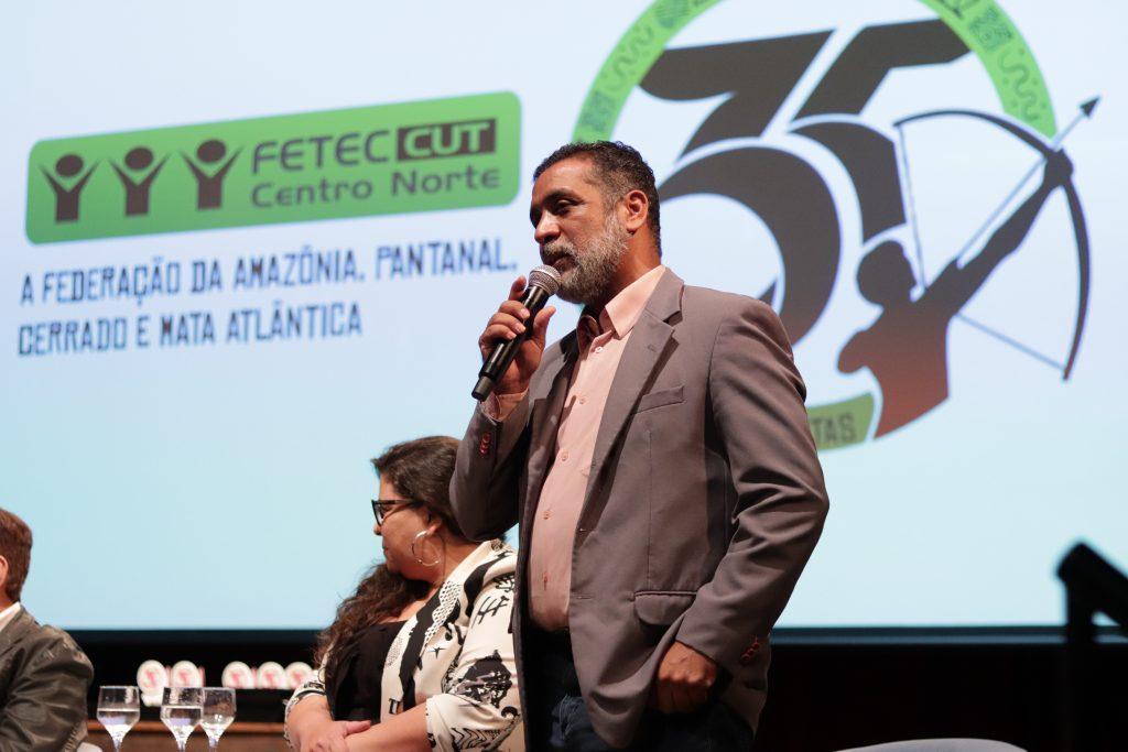 Representando a Direção Nacional da CUT, o presidente Eduardo Araújo, dos Bancários de Brasília, conclamou aos presentes que lutem por uma construção de uma sociedade mais igualitária por meio do Sindicato Cidadão e que tenha como inspiração a trajetória de luta da Fetec-CUT/CN. “ Nós bancários tivemos sempre na frente da defesa de todo o povo brasileiro”. Parabenizou a luta da categoria bancária, enfatizando “que a força coletiva dos sindicatos fortalece no e para o cumprimento dos direitos trabalhistas e sociais”.