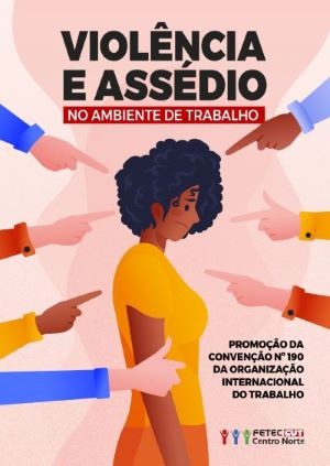 Durante a assembleia a Fetec-CUT/CN também fará o lançamento da cartilha Violência e Assédio no Ambiente de Trabalho (capa abaixo), preparada pela Secretaria da Mulher da Federação, que contém uma versão comentada da Convenção 190 da OIT (Organização Internacional do Trabalho), aprovada em junho de 2019, da qual o Brasil ainda não é signatário.