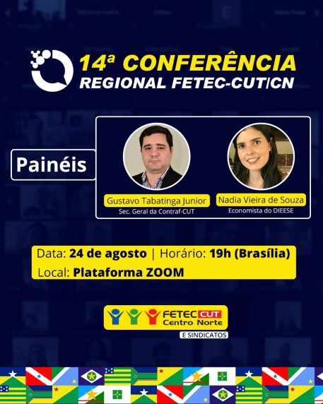 A Federação os Bancários do Centro-Norte (Fetec-CUT/CN) realiza nesta terça-feira 24 de agosto sua 14ª Conferência Regional, de forma virtual, para discutir e aprovar as propostas que levará à 23ª Conferência Nacional dos Bancários, marcada para os dias 3 e 4 de setembro com o tema geral “O Brasil que Queremos”.