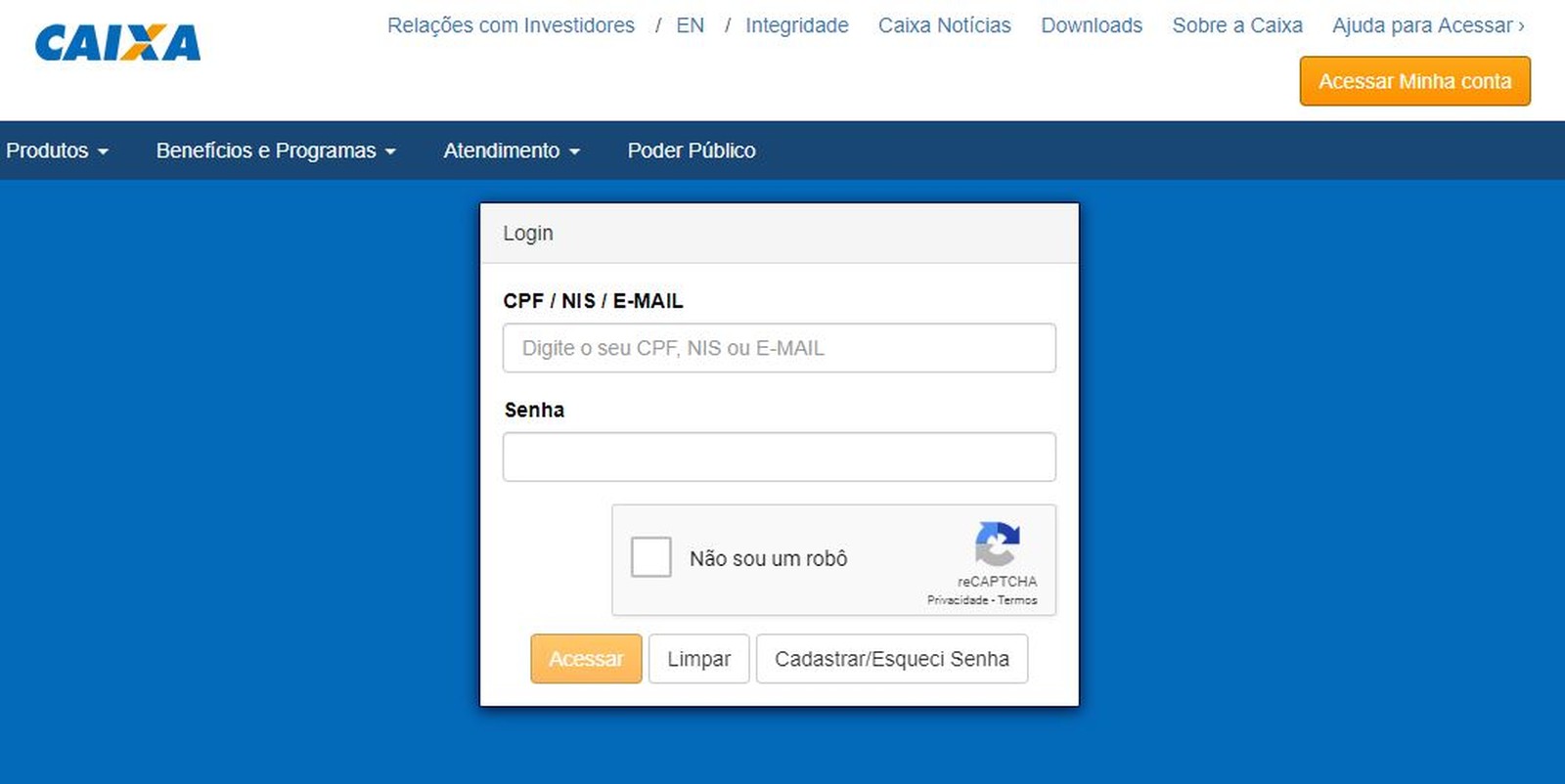 É possível usar ainda a Senha Cidadão. A página oferece a opção de recuperar a senha, mas é preciso informar o NIS. O serviço mostra dados cadastrais e lançamentos feitos na conta nos últimos 6 meses. Veja como consultar o número do seu PIS/NIS.