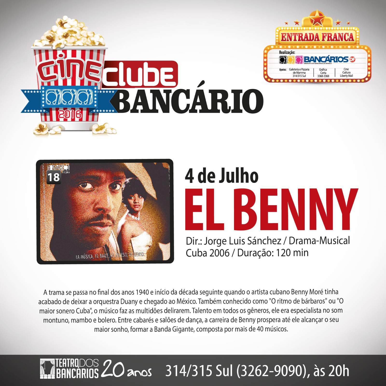Estreia do Cineclube Bancário de julho, "El Benny", uma das maiores bilheterias de Cuba, é um musical que fala sobre a vida agitada do cantor Benny Moré, um autodidata que se converteu em lenda da música cubana com sua voz excepcional. O "Bárbaro do Ritmo", como o chamavam, morreu em 1963, de cirrose. A exibição começa às 20h, no Teatro dos Bancários, na sede do Sindicato (EQS 314/315).