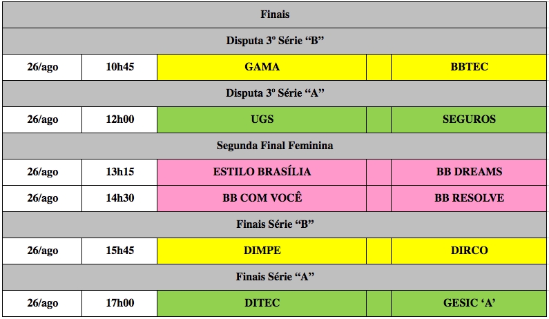 Após três meses de competições, a XIII edição do Campeonato de Futebol Soçaite 2017 do Banco do Brasil, mais conhecido como Interagências, chega à final neste sábado (26). Os jogos começam às 10h45, na AABB. Para comemorar o sucesso desta temporada, será realizada a tradicional festa de premiação, também no sábado, às 19h30, no Bangalô da AABB.