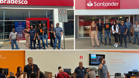 A ação contemplou agências de bancos como Itaú, Bradesco e Santander, com o objetivo de acompanhar de perto a realidade enfrentada pelos bancários diante das mudanças estruturais em curso no setor.