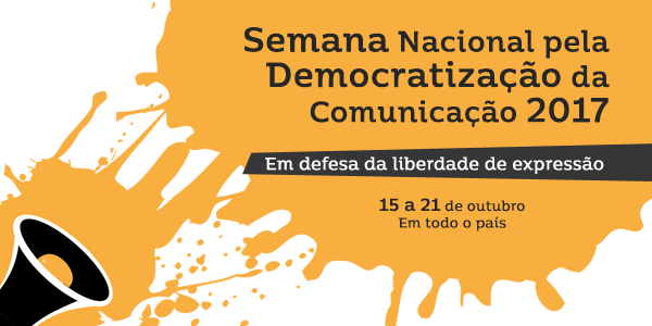 O Fórum Nacional pela Democratização da Comunicação (FNDC) promove, de 15 a 21 de outubro, a Semana Nacional pela Democratização da Comunicação 2017. Debates, seminários, atos e atividades políticas e culturais estão marcadas em diversos estados e aqui no DF, com ênfase na denúncia de violações à liberdade de expressão em curso no Brasil.